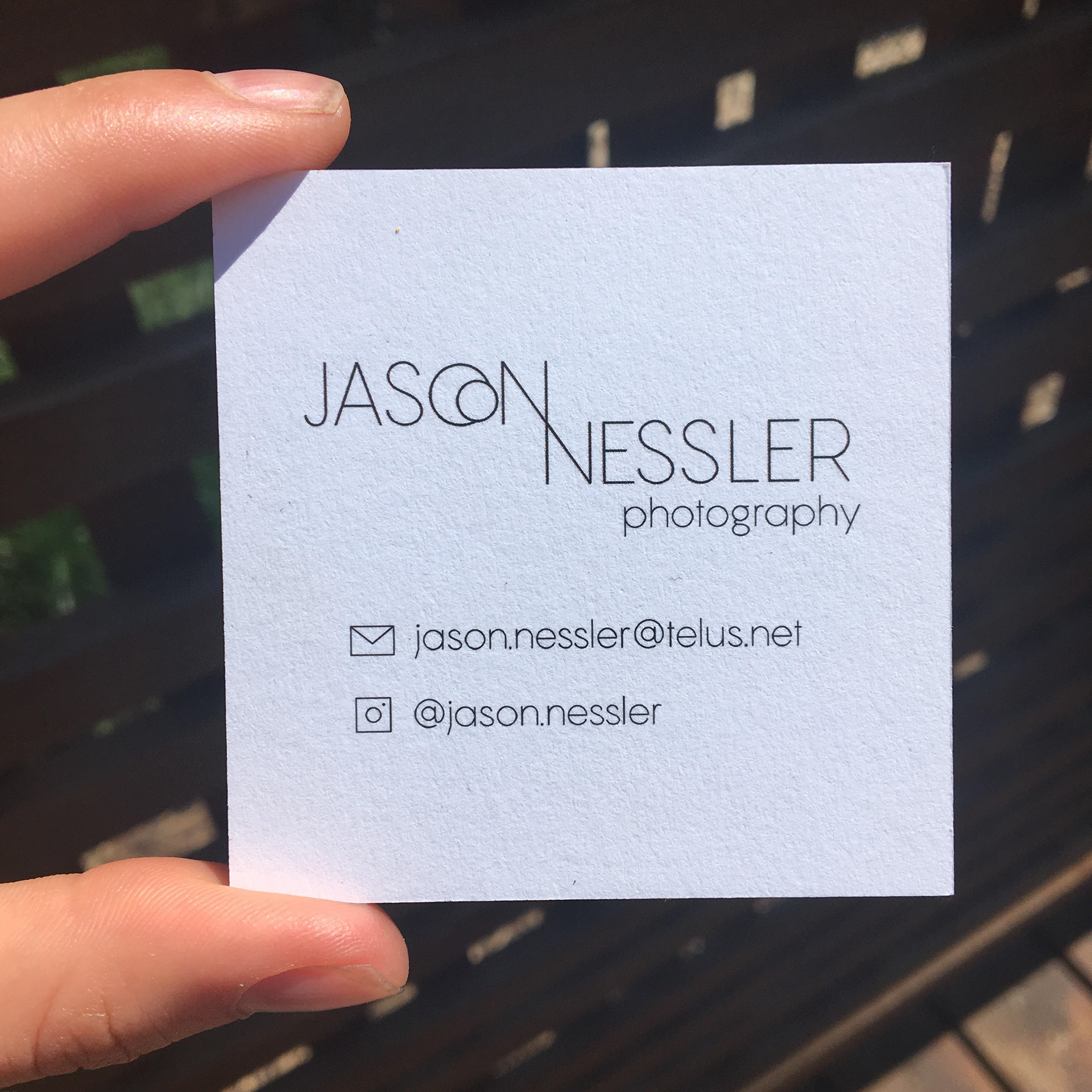Wordmark & Business Card created for Jason Nessler, local film photographer specializing in B & W film photography and featured in the 2021 Exposure Photography Festival. The wordmark is inspired by a lens flare with a clean, modern edge. The business card features one of Jason's beautiful, mysterious film photographs in a fun square shape, printed on triple-edged textured paper with a grey accent in the middle.